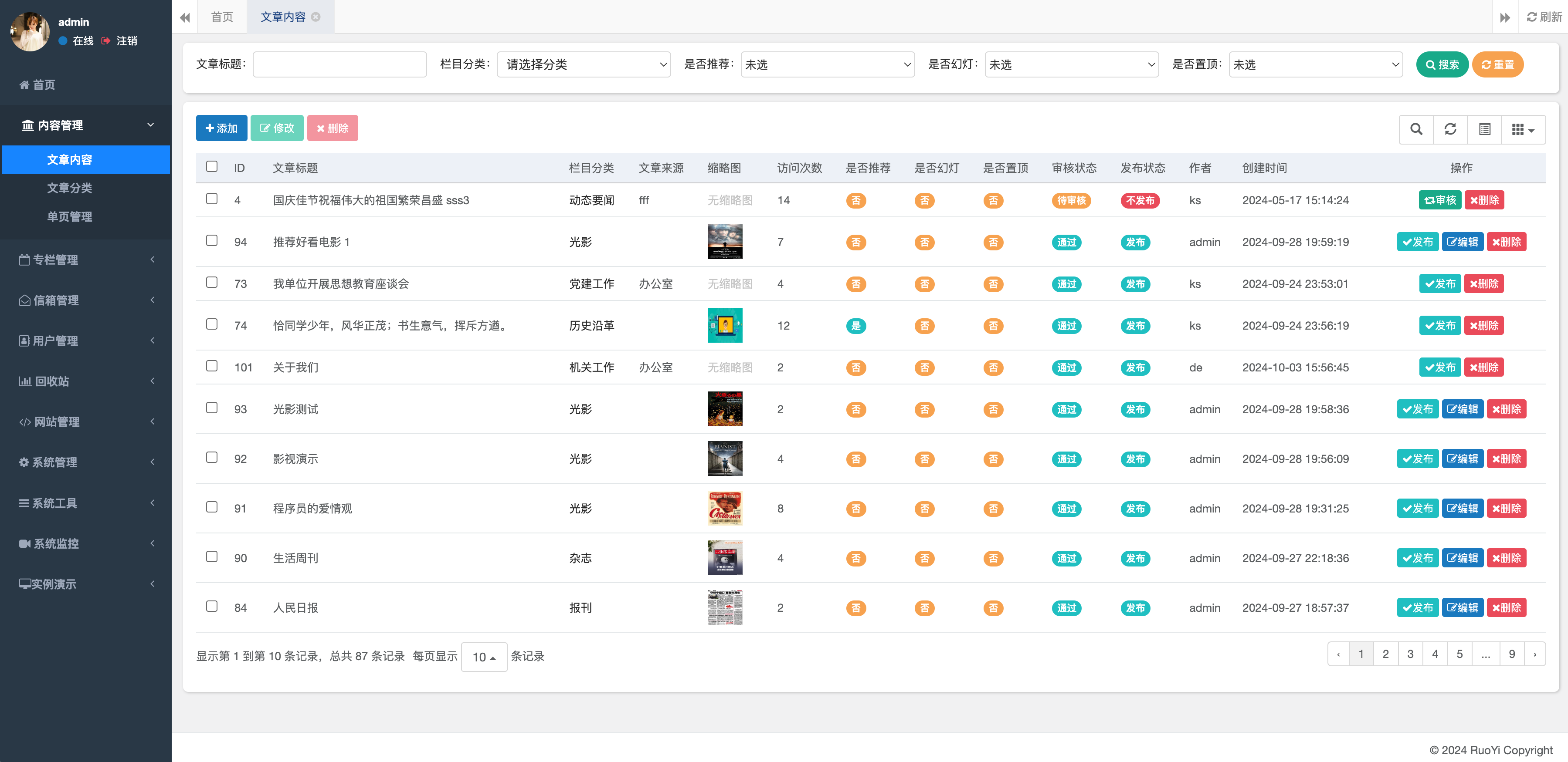 適用于政府機(jī)關(guān)、企事單位網(wǎng)站建設(shè),基于JAVA 、mybatis開發(fā),運(yùn)行穩(wěn)定、部署簡(jiǎn)單、運(yùn)維輕便;功能不限于:文章管理、分類管理、單頁(yè)管理、專題管理、在線投稿、集約化站群、文章統(tǒng)計(jì)、內(nèi)容審核等;